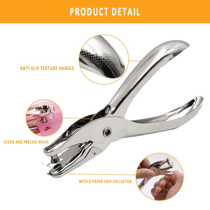 - Ergonomic Design: The hole punch handle features an anti-slip texture and an ergonomically designed comfortable grip, reducing hand fatigue and ensuring convenience even during extended use