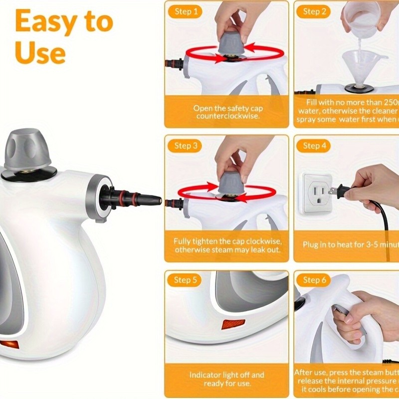 Transform your cleaning routine with our Multipurpose Handheld Pressurized Steam Cleaner! Designed for effortless and eco-friendly cleaning, this natural steam cleaner delivers 230°F (110°C) high-temperature steam to tackle dirt, grease, and grime on virtually any surface.