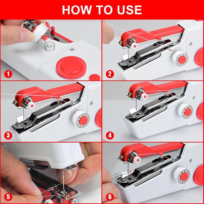 - EASY TO USE - Portable sewing machine handheld is convient for one-hand operation. It can easily meet your different sewing needs. Hand held sewing machine is equipped with 4 thread set points to provide stable, slender stitching for easy loss or stringing. Single thread sewing does not require any bottom thread installation.