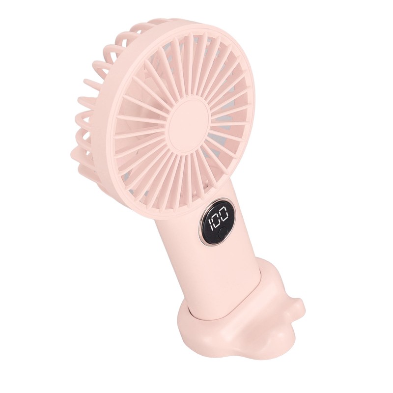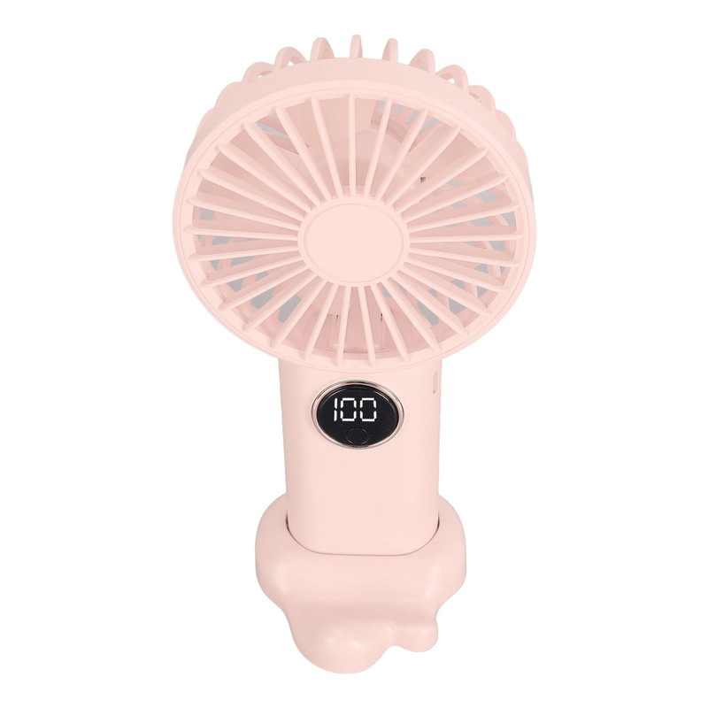 Handheld USB Fan with Base 5 Gears Wind Brushless Motor Rechargeable Silent Cooling Fan for Home Dormitory Office Pink