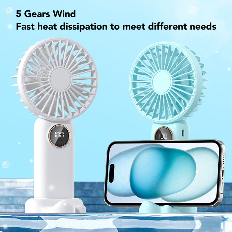 1、5 Gears Wind: This handheld fan adopts 5 blades design, which can generate strong airflow. It has 5 gears wind adjustment to meet more needs and quickly cool down in hot weather. 2、Brushless Motor: This USB fan adopts a DC brushless motor, speed up to 3600rpm, environment friendly and energy saving. It can work continuously, provide you with long lasting and stable cooling. 3、Power Supply: Built in polymer lithium battery, 800mAh large capacity ensures long endurance, equipped with USB cable for convenient charging, convenient for use anytime, anywhere. 4、Digital Display Screen: This handheld USB fan is equipped with a large digital screen, providing clear and intuitive display of gear and remaining battery, making it easy to adjust and use. 5、Applicable Scenario: This portable fan is compact and lightweight, easy to store and carry, and can be placed in a bag or handbag. It is suitable for use at home, school, office, or outdoor travel.