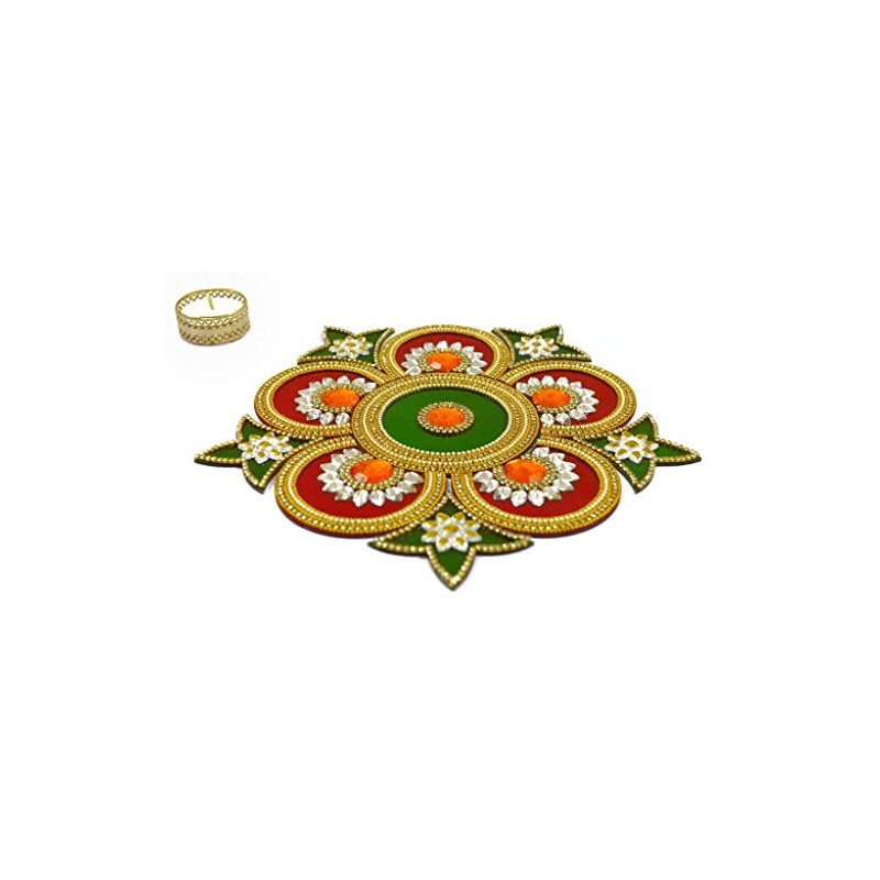 - Beautiful handmade Acrylic Rangoli with creative design, kundan work with bright colors to decorate your home entrance beautifully.