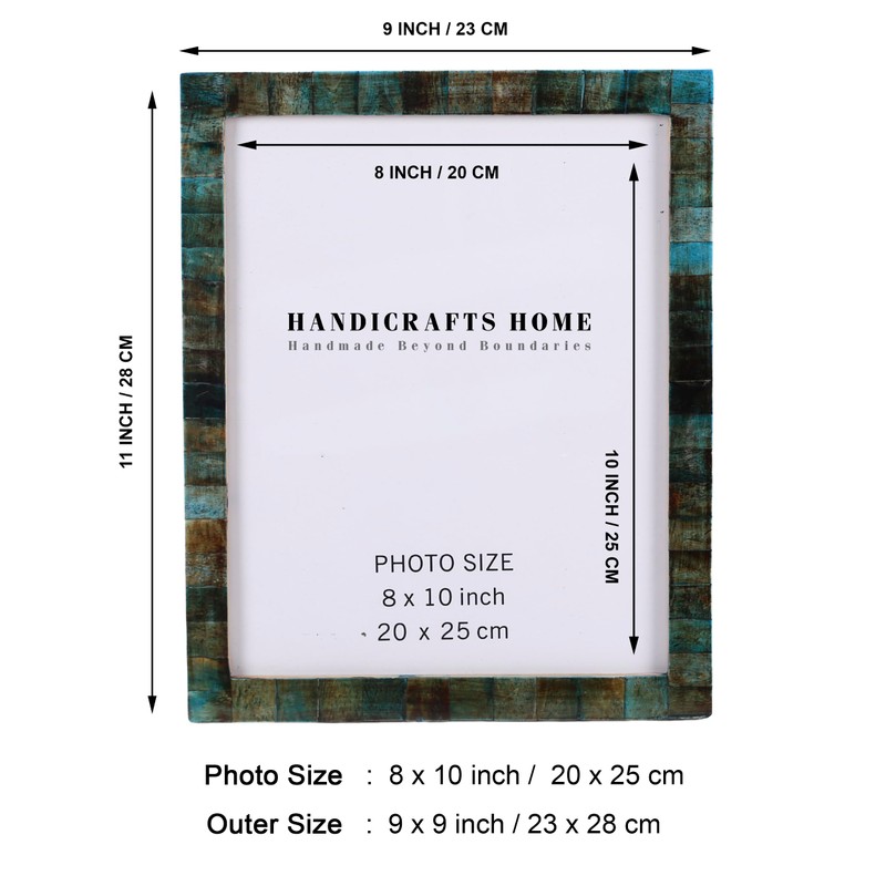 Handicrafts Home Bone Picture Frames Chic Boho Wall Décoration Table Mount Photo Frame - 8" x 10" Verdigris