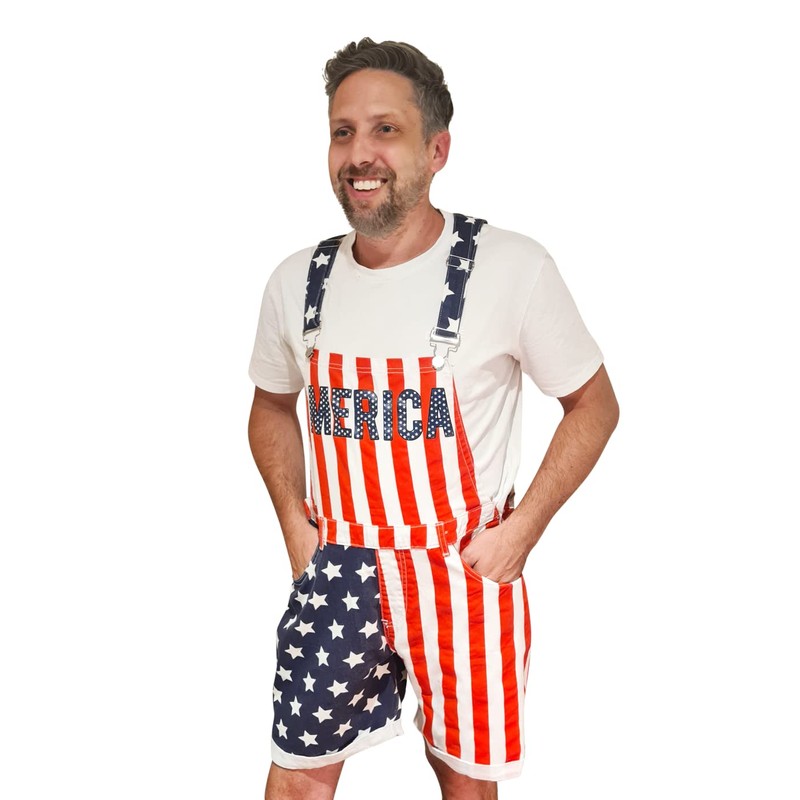 HandinHandCreations USA Overalls Rompers Merica Red White Blue Design All American Look - Quality Build (X-Large)