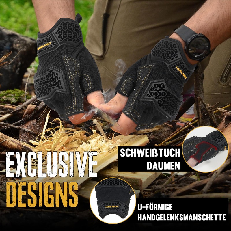 HANDLANDY Fingerless Framer Work Gloves for Men, Utility Grip Paded Gloves for Shooting, Hunting, Driving (Black, M)