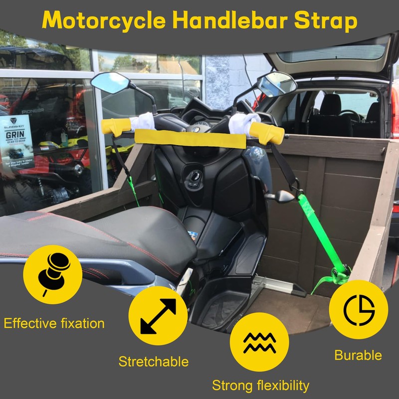 - Effectively Protect Your Motorcycle: The motorcycle Handlebars Strap fits handlebars up to 32 inches wide and helps keep the Motorcycle from shifting side-to-side, keeping the whole vehicle centered during transport, which can effectively protect the sport/Standard Motorcycles. Made the transport process much easier and much quicker