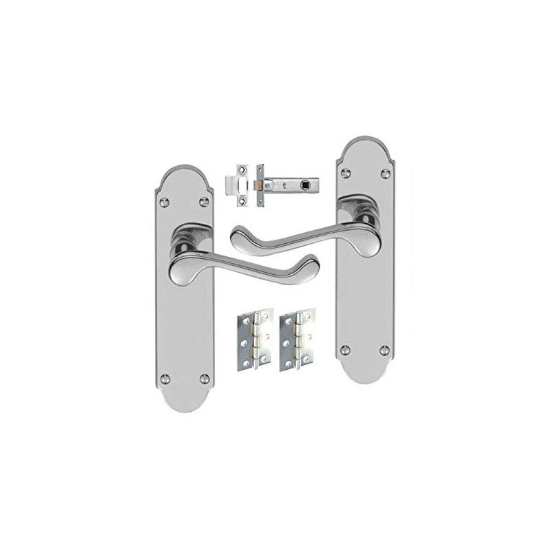 HANDLESTORE Shaped Scroll Door Handle Lever On Backplate - Includes Hinges and Latch - Polished Chrome