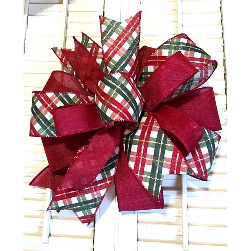 Handmade 10 " DARK RED, GREEN PLAID WIRED BOW for DOOR WREATH LANTERN # 151 rb