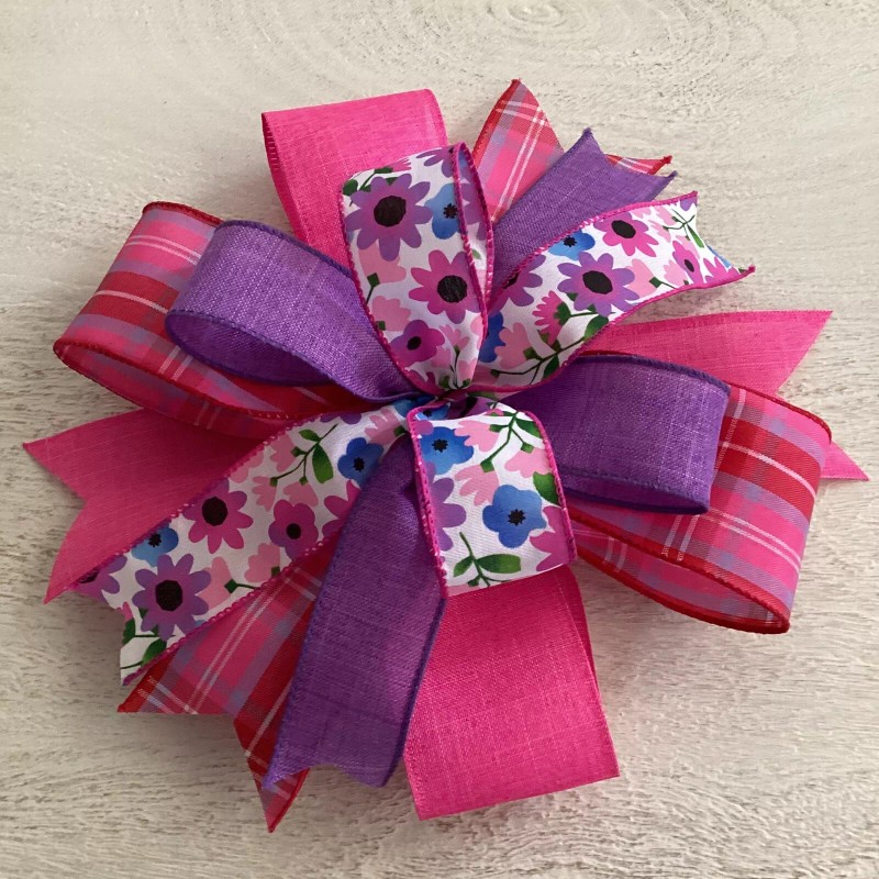 • Made with 8 loops 1.5" & 2.5” ribbon; Pink & Purple Spring Ribbons