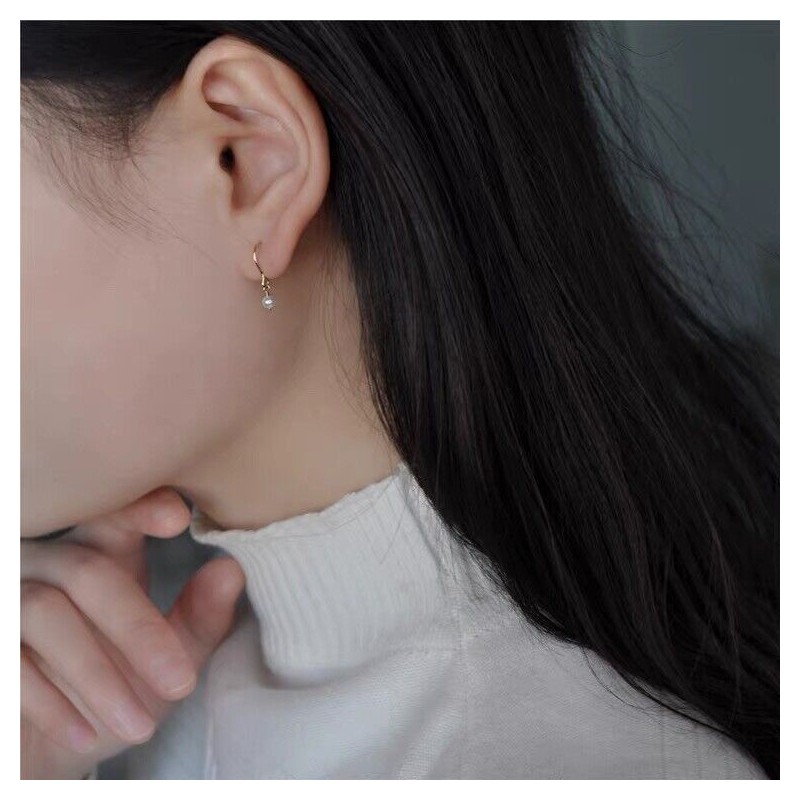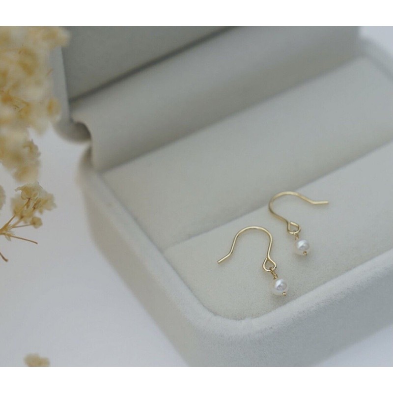 Handmade 18K Gold Plated 3-4mm Freshwater Button Pearls Dangle Hypoallergenic Earrings