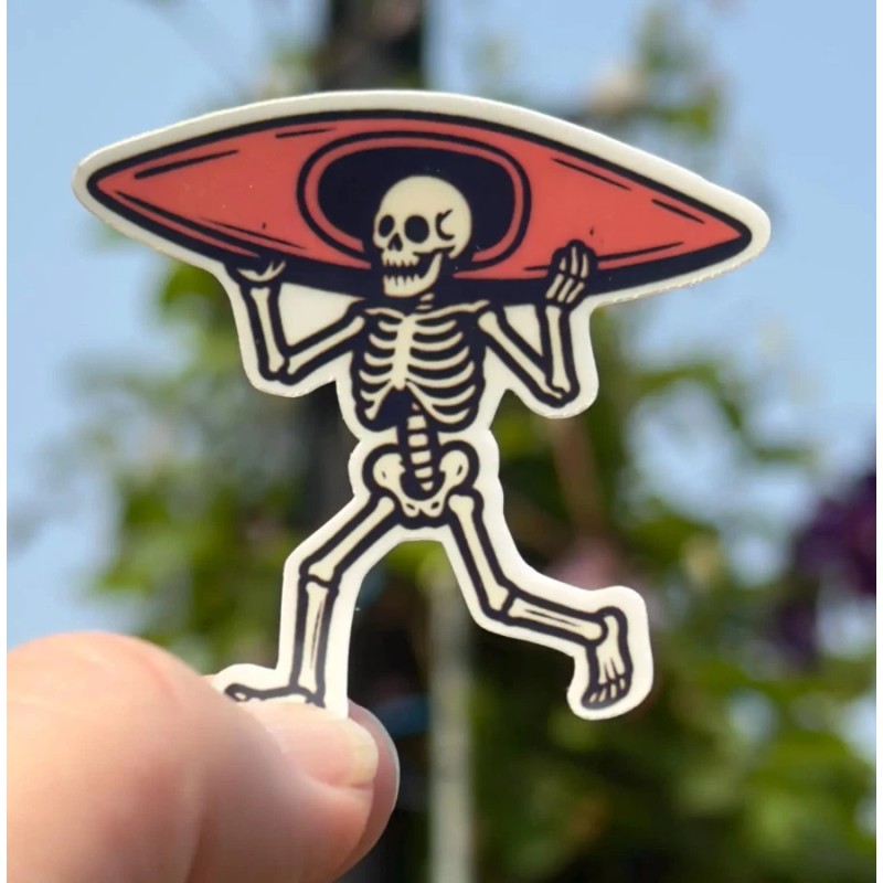 Ready to paddle through life... or the afterlife? Meet our Skeleton Kayaker Sticker – a playful design featuring a smiling skeleton hauling a red kayak overhead, full of adventure and spooky charm.