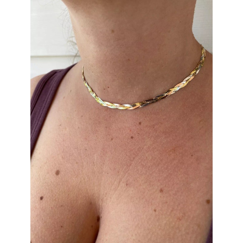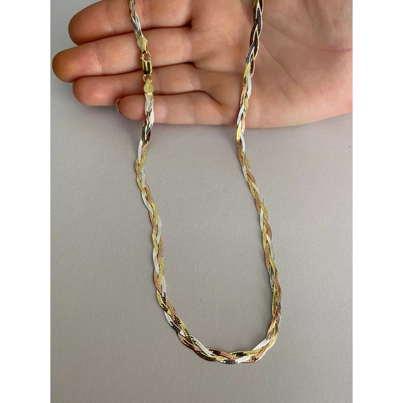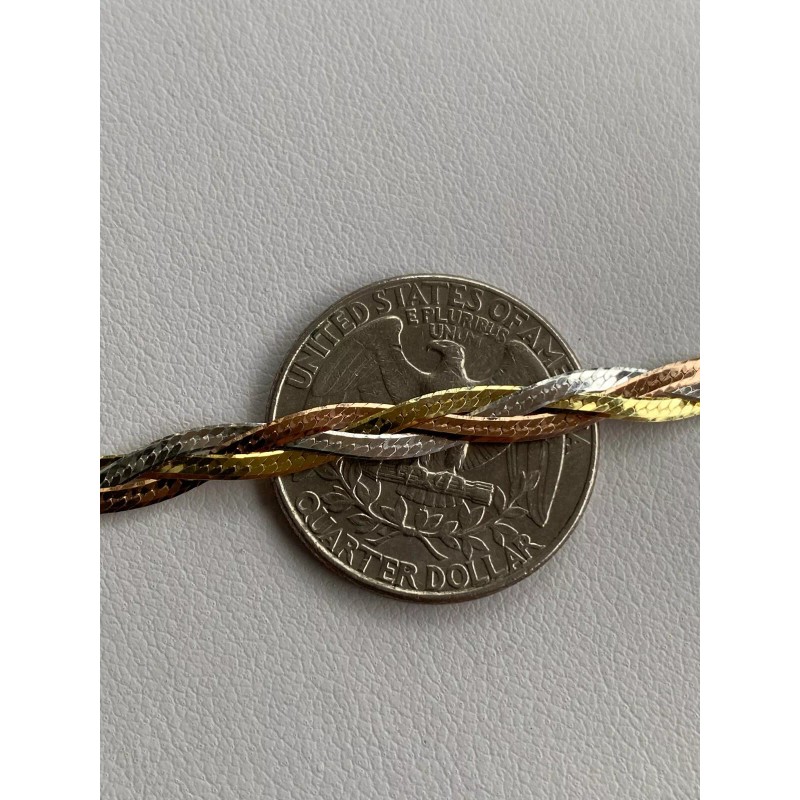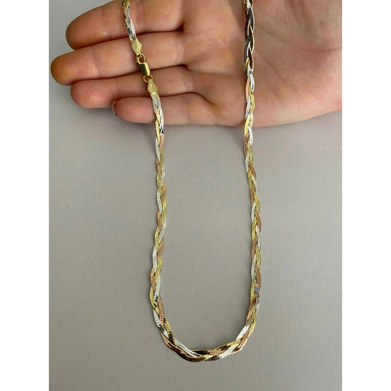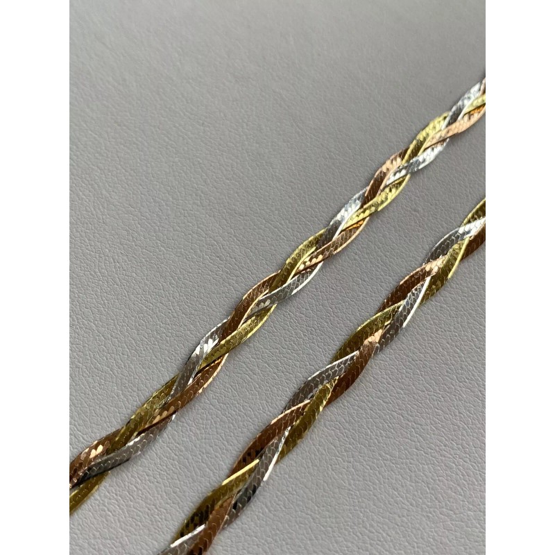 Handmade 925 Silver Tri-Color Yellow Rose Gold Plated Twisted Braided Herringbone Chain - 24"