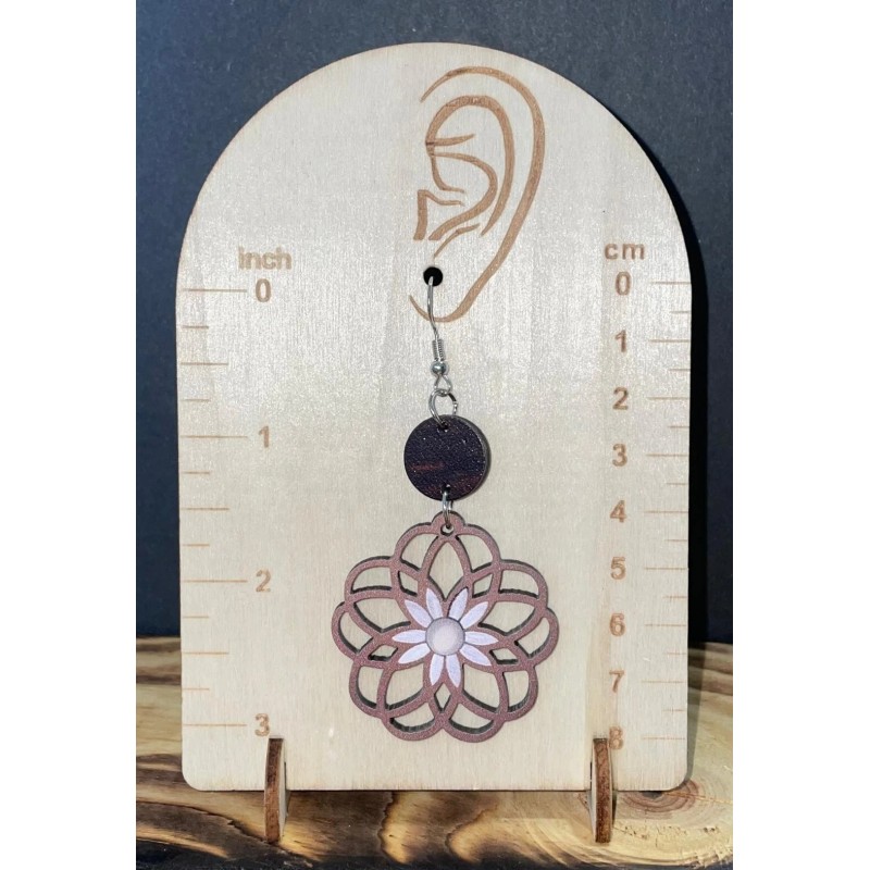 Handmade / Assembled NEW Boho Hippie Chic Hollow Brown Wood Flower Earrings