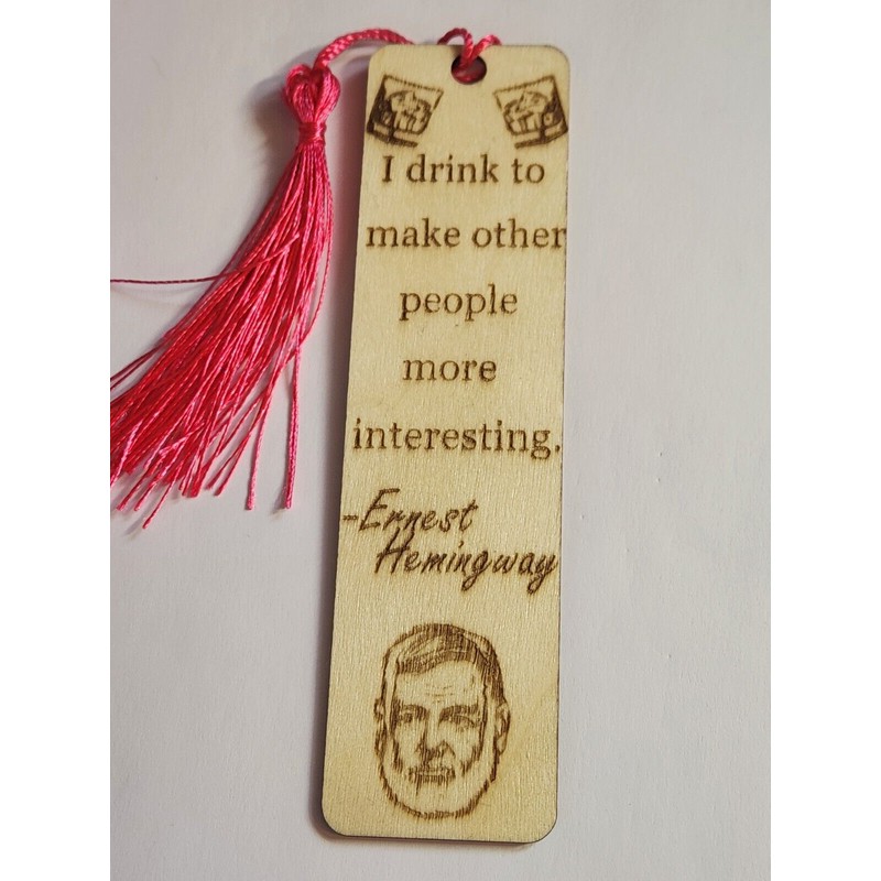 Handmade Basswood Laser Cut Engraved Bookmark w/ Tassel Hemingway