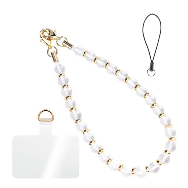 Handmade Beaded Charm Cell Phone Camera Lanyard, Wrist Strap with Natural Gemstone Beads,Phone Chain String, Keychain Decor for Wallet (Clear quartz)
