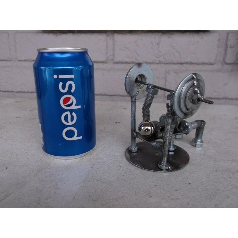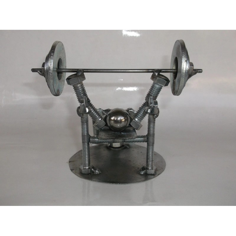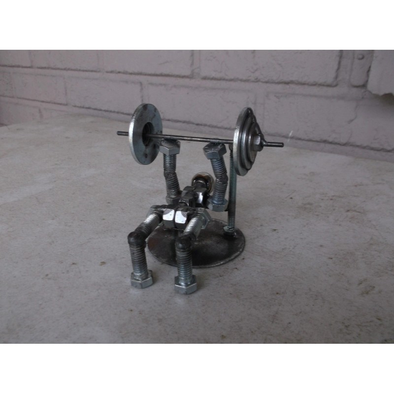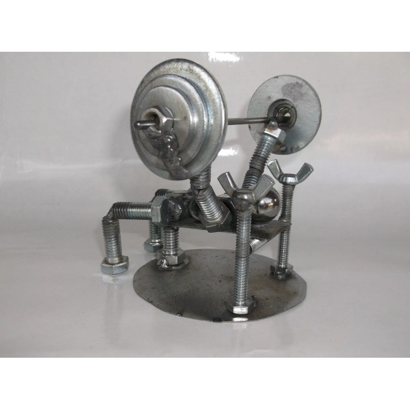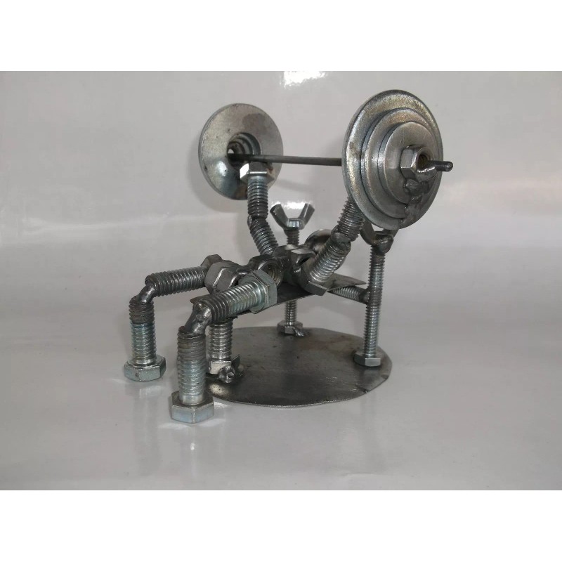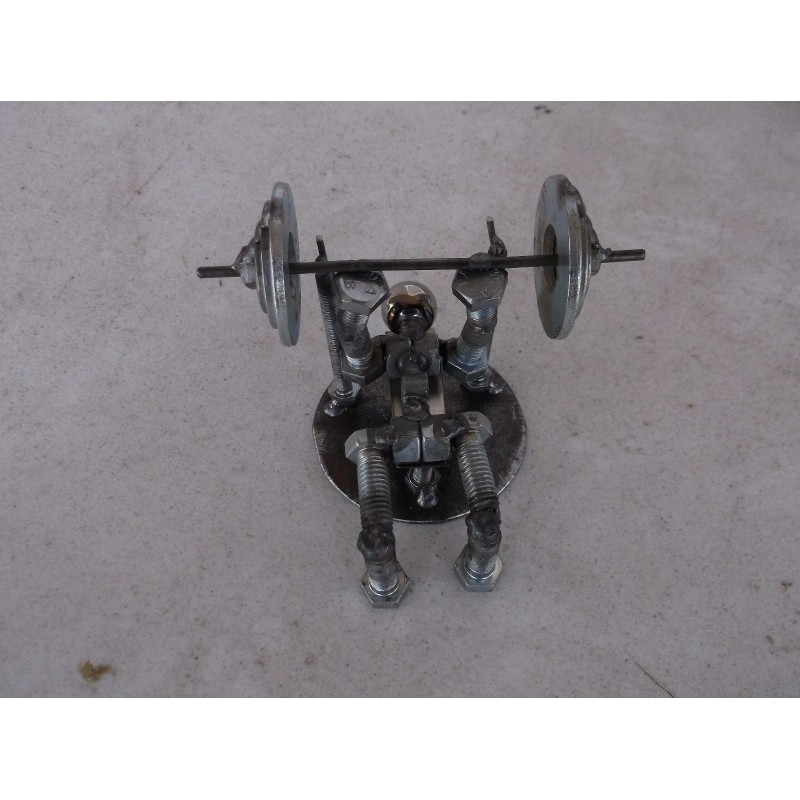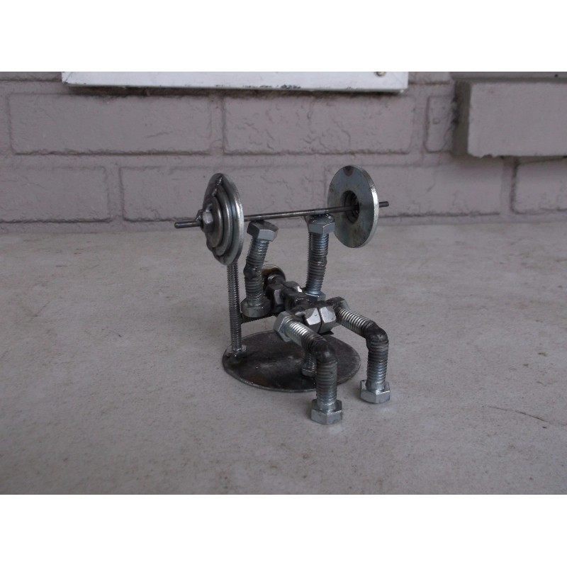 Handmade Bench Press Weight Lifter, Metal Bolt Figurine, Miniature Athlete, body builder