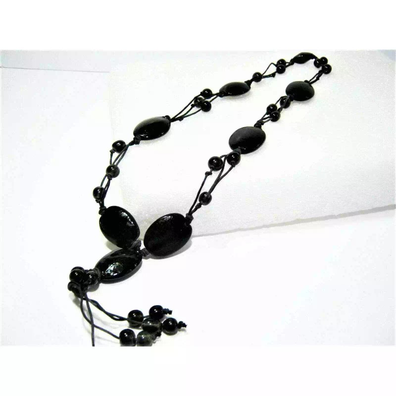 Handmade Black Agate beaded Corded Casual style Hippie BOHO Tassel Drop Necklace- 24 inch