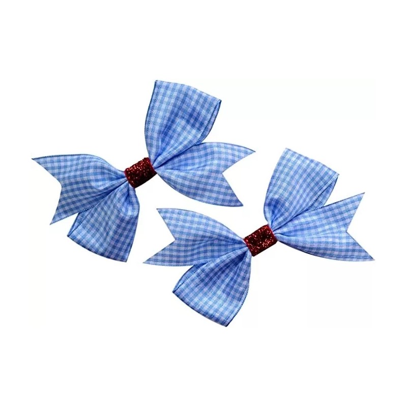Handmade Blue Gingham Costume Hair Bow Set (2) Gingham Ribbon and Ruby Red Glitter Hair B