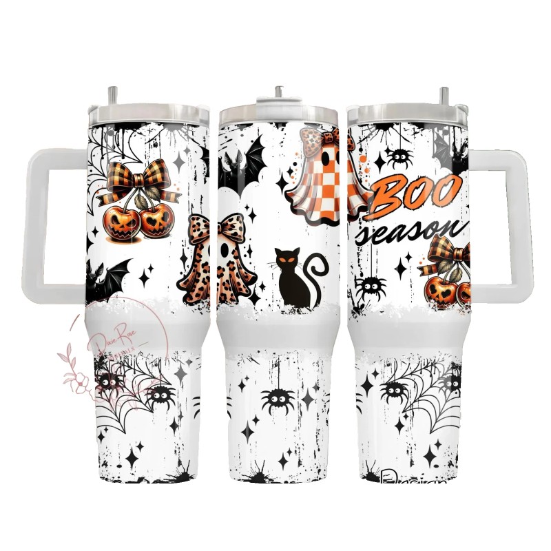 Boo Season Spooky Halloween Ghost Spider 40oz Tumbler Travel Mug Insulated Tumblr