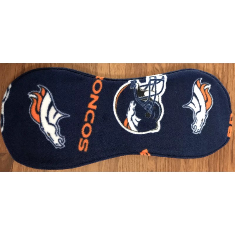 You are viewing my handmade burp cloth. They are made with 2 layers of soft very absorbent fleece. The burp cloths are hourglass shape. The are approximately 18” long and 6 inches at the narrowest part. I have been making burp cloths for over 30 years for my license childcare home. They are made very well and they will withstand lots of washing. The fleece in back is a solid color that coordinates with the front. The burp clothes are not serge, they are sewn and then turned right side out.