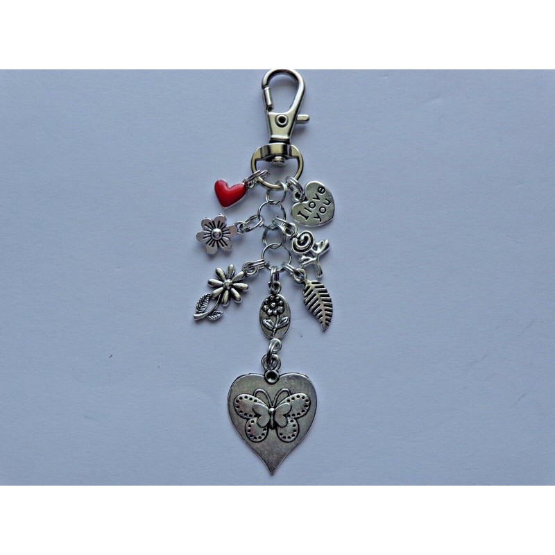 Handmade BUTTERFLY LOVE YOU FLOWERS RED HEART KEY CHAIN CLIP FOR PURSE BACKPACK BAG FOB