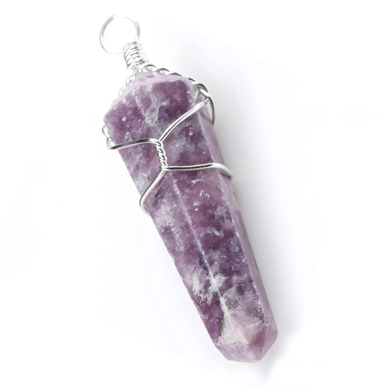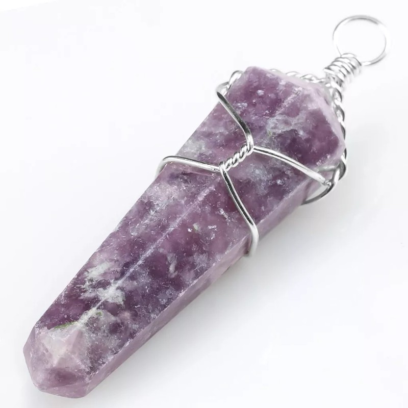 Handmade by mmCrystals Lepidolite Wire Wrap Double Terminate Point Chakra Crystal Pendant Necklace HAND