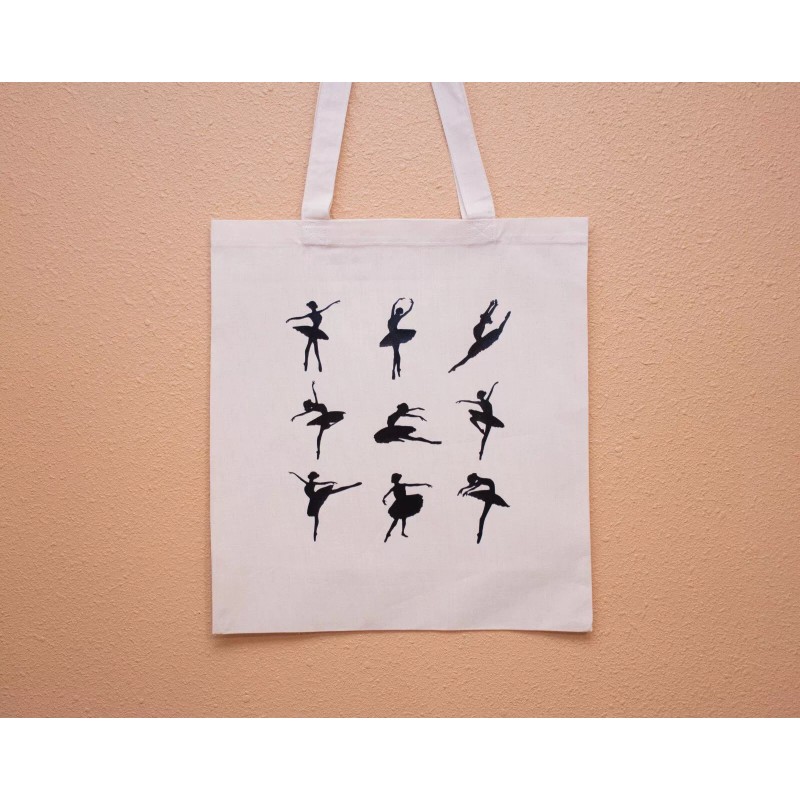 Handmade Canvas Tote Bag, Cotton Reusable Bag, Grocery Bag, Ballerinas Canvas Bag
