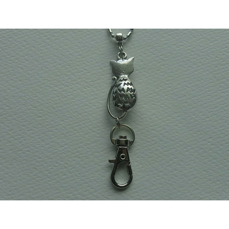 Handmade CAT KITTEN LANYARD ID BADGE HOLDER DESIGNER ADJUSTABLE STAINLESS STEEL CHAIN