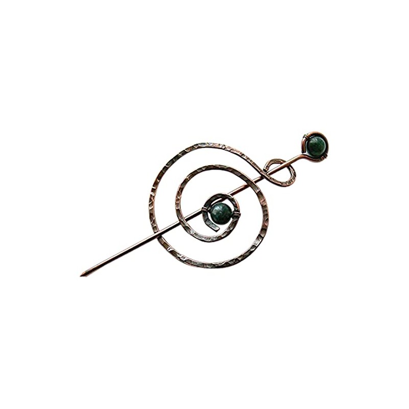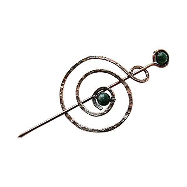 Handmade Celtic Copper Shawl Pin with Green Agate