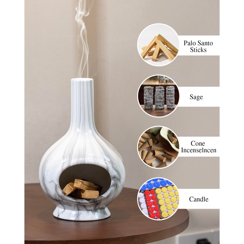 - Creates Soothing Meditation Atmosphere Designed for mindfulness practice, this mini chiminea-style burner enhances serene decor spaces with tranquil smoke flow. Perfect for yoga studios or meditation-inspired decor arrangements.