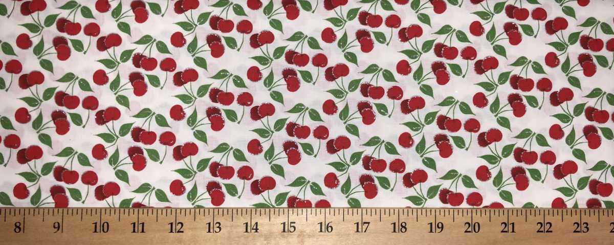 Cherry Fruit Valance Glitter Red Cherries Green Leaf Stem White Window Curtain Topper