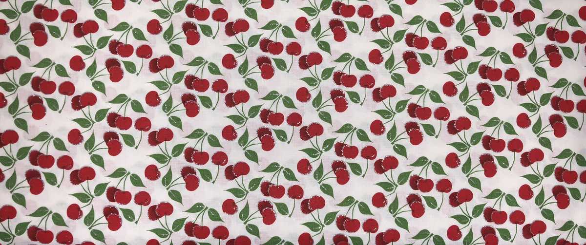 "Handmade" Cherry Fruit Valance Glitter Red Cherries Green Leaf Stem White Window Curtain
