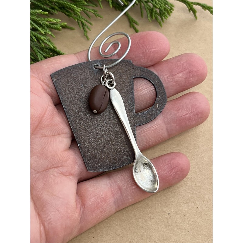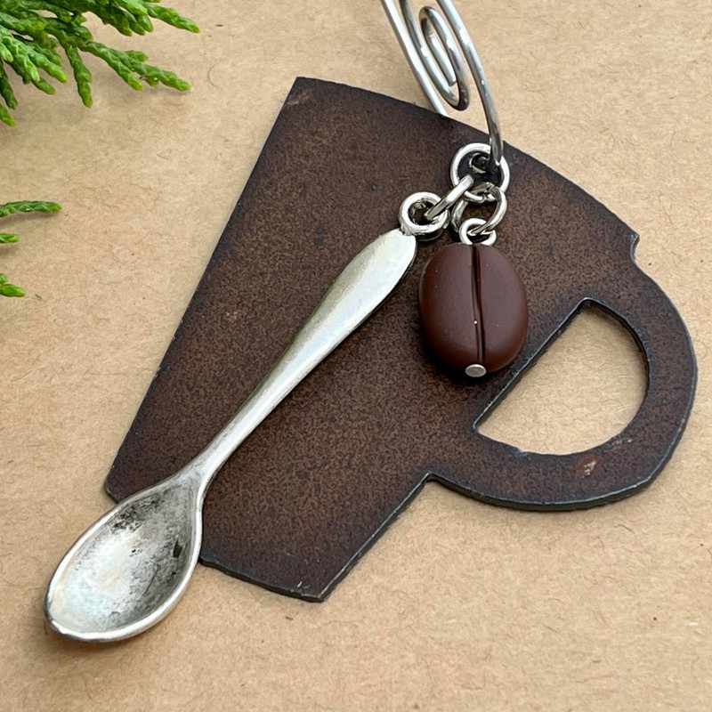 Handmade Coffee Christmas Ornament with Spoon and Bean Charms