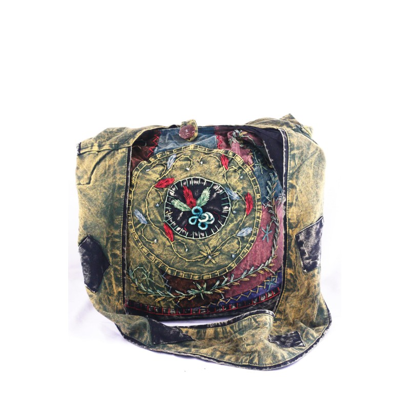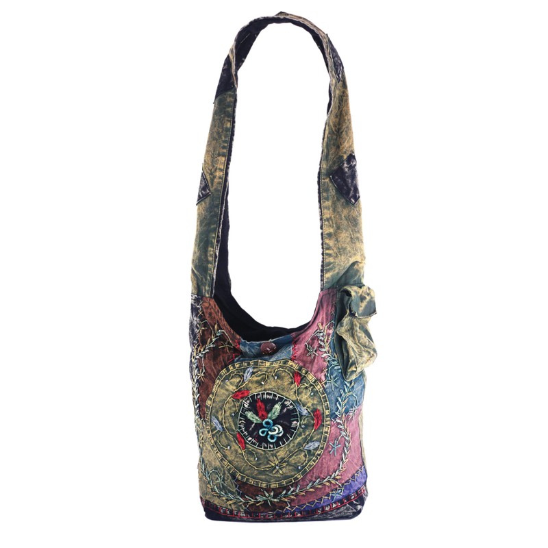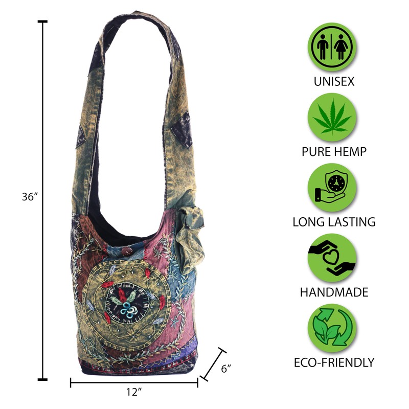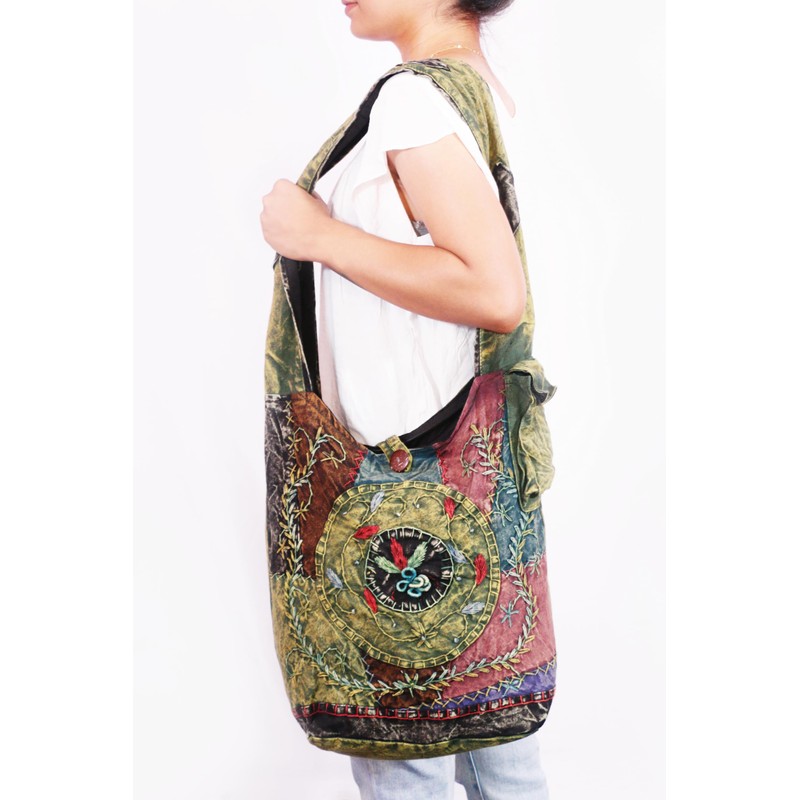 Handmade Cotton Jacquard Crossbody Bag, Large Size, Top Zip Closure, Embroidered Hobo Purse, Patchwork Design