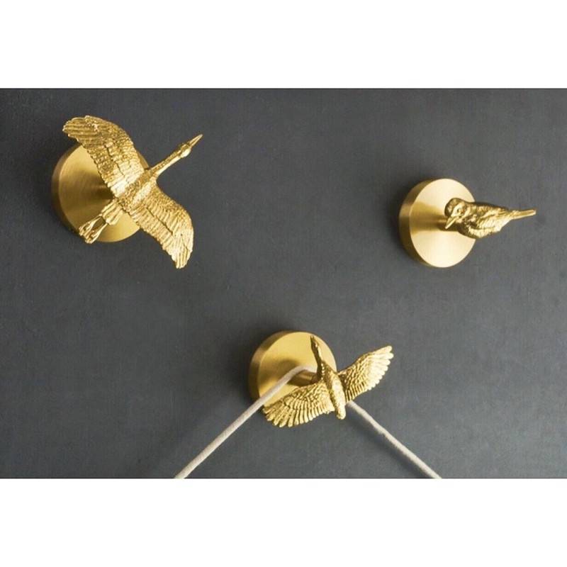 Handmade Crane Handmade Solid Brass Animal Hook Wall Mounted Coat Clothes Gold Modern Key