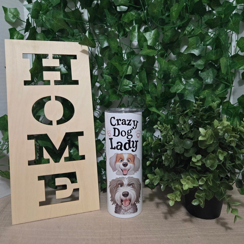 Handmade "Crazy Dog Lady" 20 oz Skinny Tumbler Perfect for both hot and cold beverages