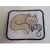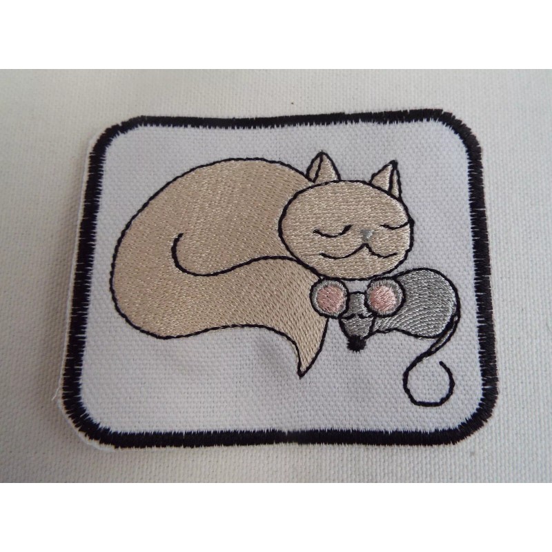 Handmade Cream Sleeping Cat and Mouse Embroidered Iron On Patch