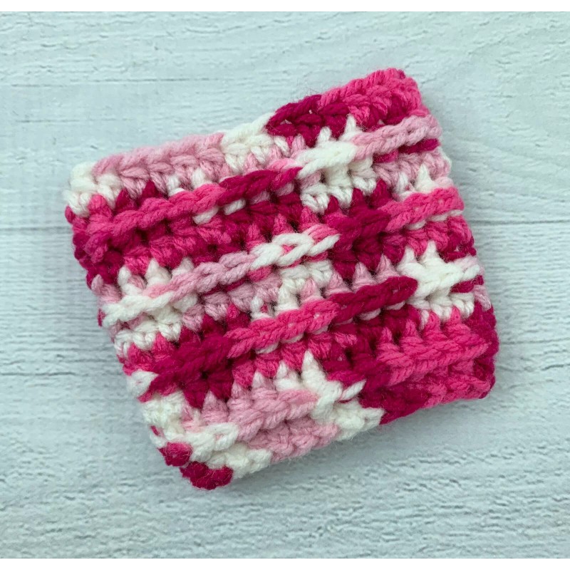 Handmade Crochet Coffee Cup Cozy or Sleeve - Red Pink White NEW