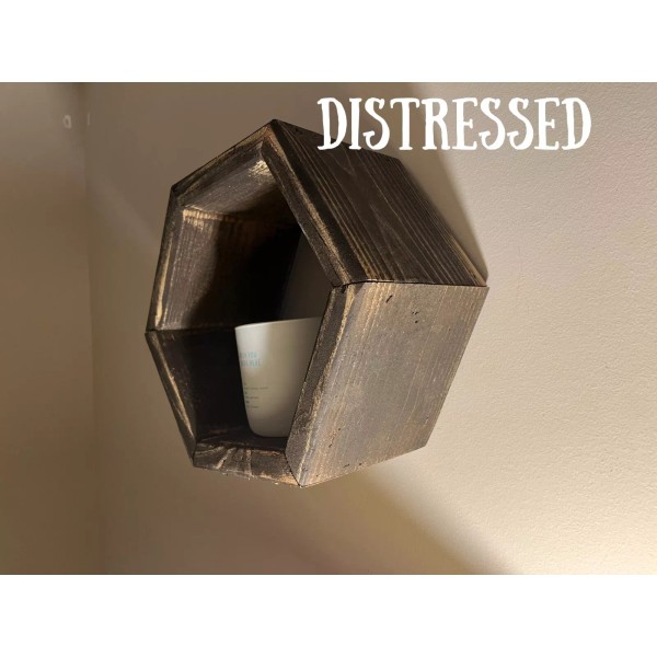 Handmade Distressed Hexagon Wall Hanging Shelf Complete Kit / Honeycomb Wall Shelf