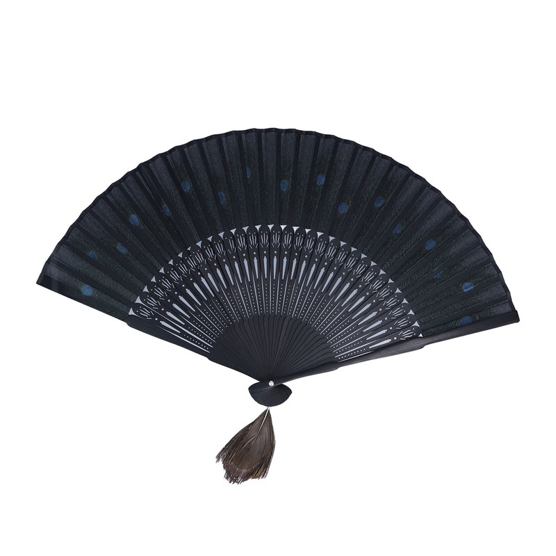 Handmade Fan - Black Bone Peacock Pattern Antique Bamboo Fan - For Performance, Garment Decoration, Decoration