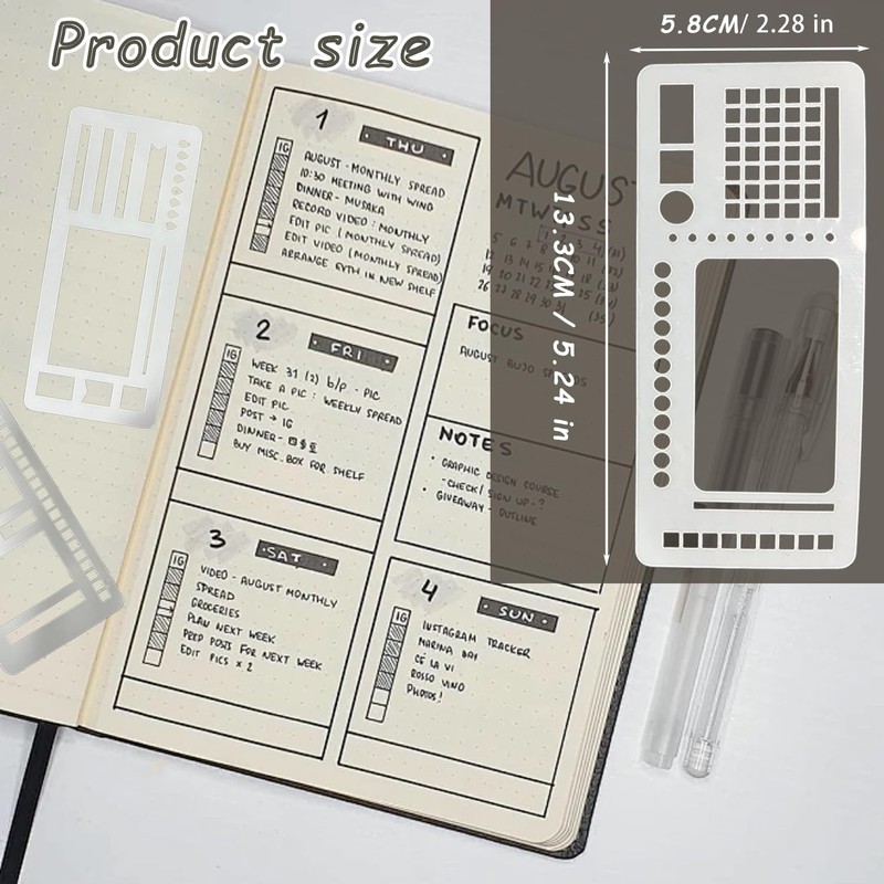 - Multi-Shape Cutouts for Efficiency:The set includes Checkbox templates (tiny to large for task lists)、Multi-size rectangles (for habit trackers or weekly spreads) 、Guided line rulers (with edge notches for dot-grid alignment), lets you draw neat layouts in seconds. Perfect for bullet journals, to-do lists, habit trackers, and more, streamlining your planning workflow.