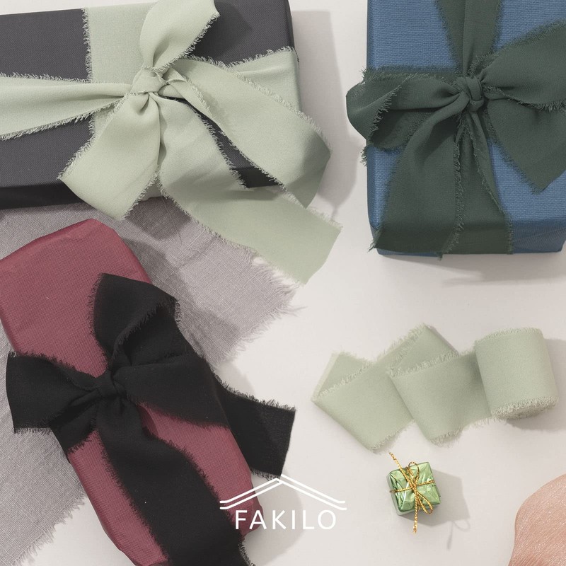 - Gift ribbon size: Our silk ribbon in a rustic look has a cutting length of 4.5 m, the ribbons 2.5 cm wide, with a rustic, serrated edge and the total length is 18 m.