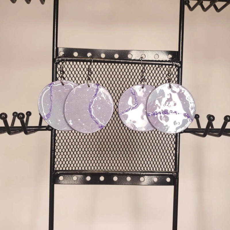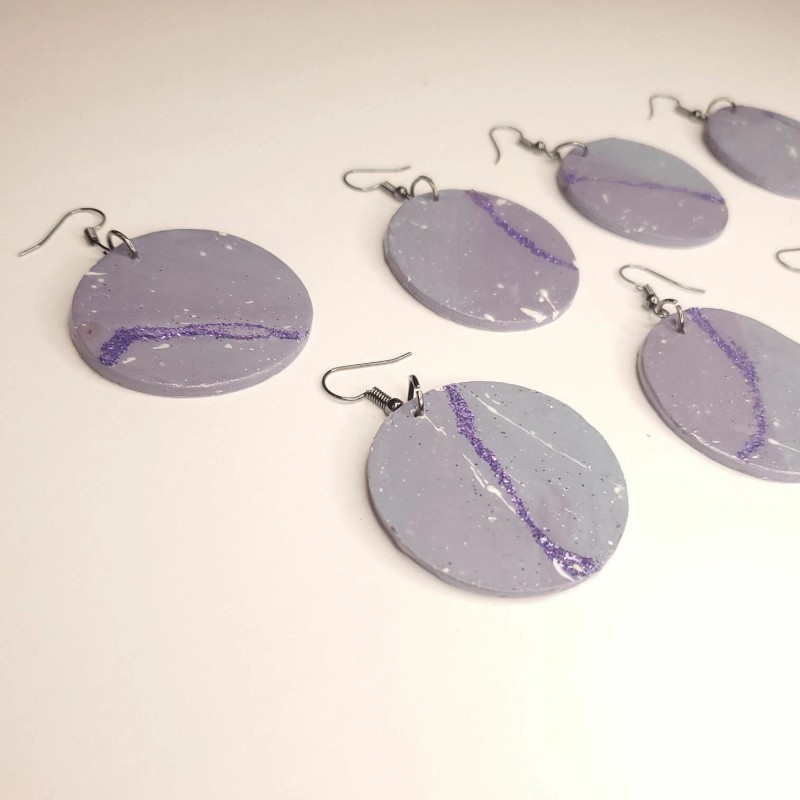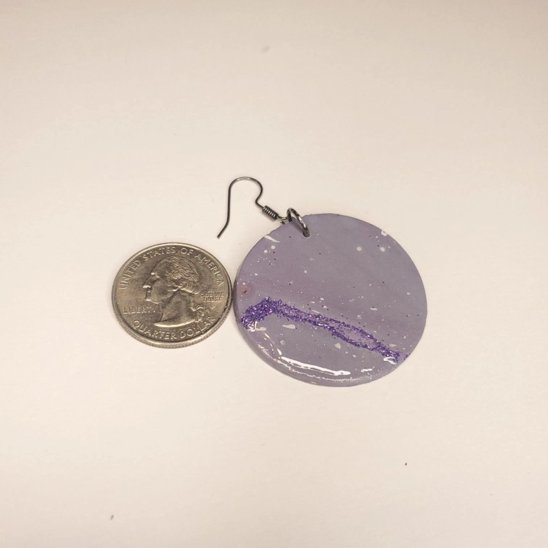 Handmade Galaxy Womens Blue Lavender Flat Back Glossy Finish Clay Discs Earrings