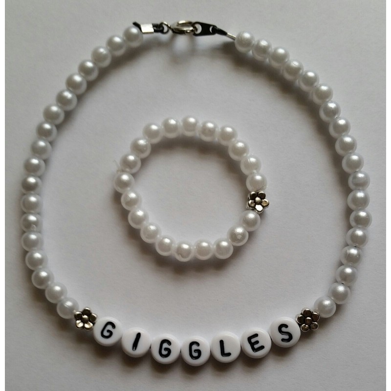 handmade GIGGLES DOLL NAME NECKLACE SET Handmade fits 18" Ideal Doll