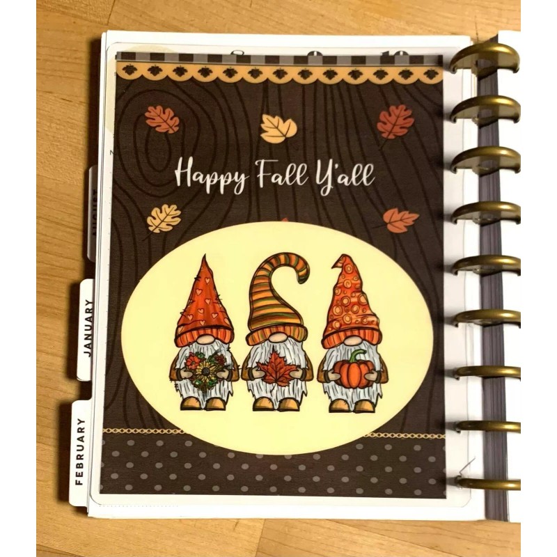 Handmade Gnomes Happy Fall Y'all Two sided DASHBOARD for use w/ Happy Planner