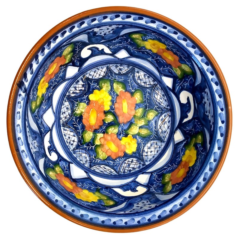 Handmade Hand Painted Portuguese Pottery Serving Bowl (Floral), 10” x 10” x 3” inches