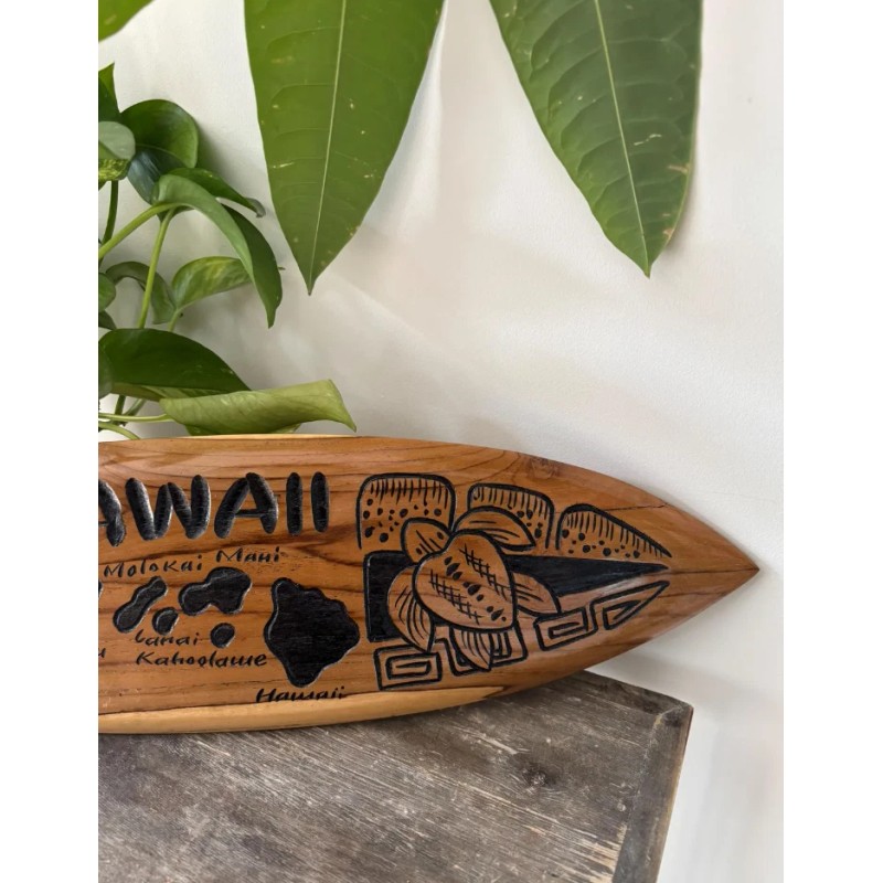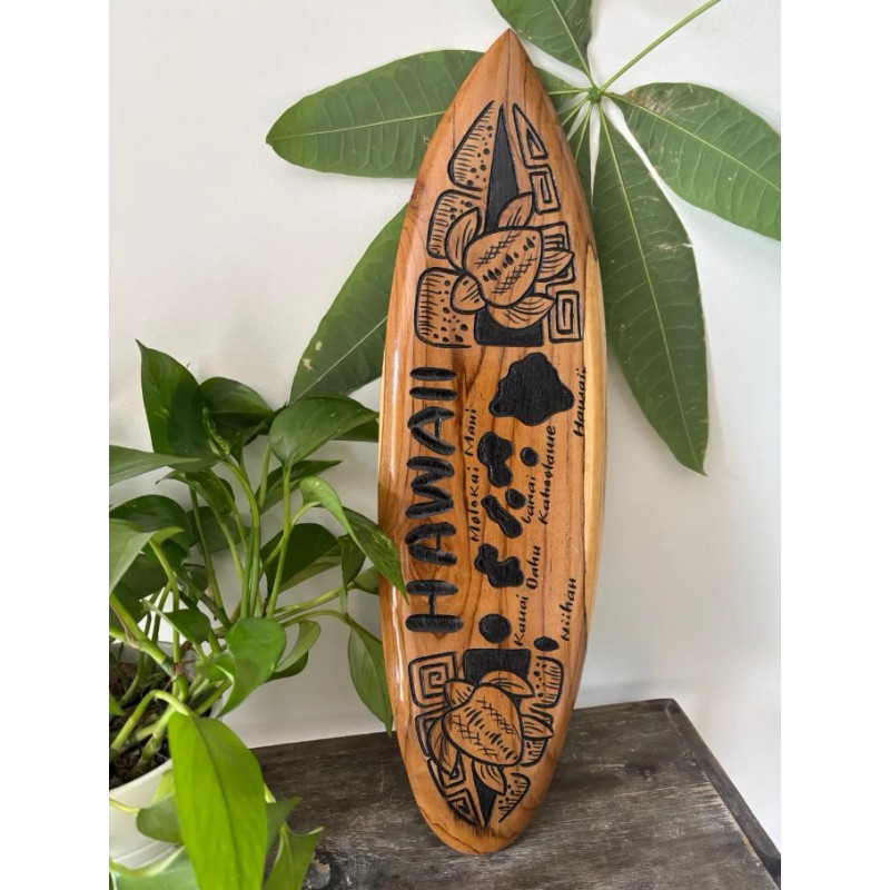Handmade Hawaiian Hand Made 20" Carved Wooden Surfboard Airbrush Beach Poly Islands Map