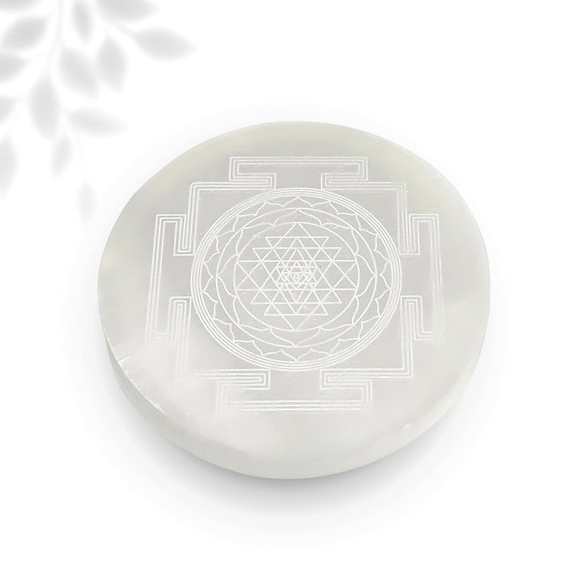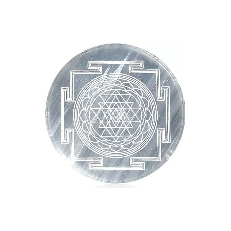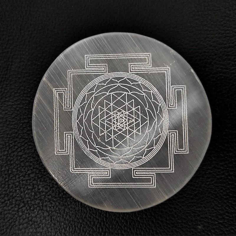 Handmade Healing Crystal Charging Plate, Engraved Sri Yantra Cube Selenite Plate Selenite Crystal Promotes Peace and Calm, Mental Clarity, and Well-Being.