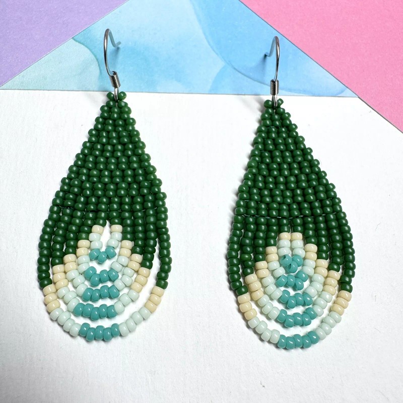 Handmade Hunter Green Turquoise Tear Drop Seed Bead Earrings 1.75” Drop Handmade