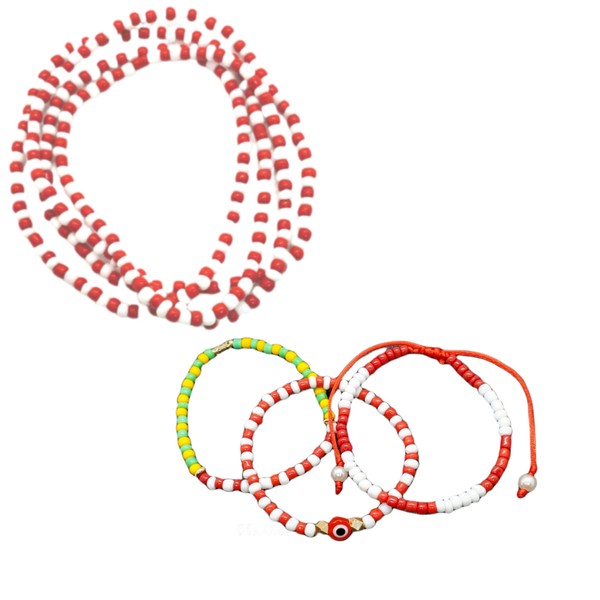 Handmade Ilde and Eleke Santeria Evil Eye Orishas Orula Protection Stretch Adjustable Beaded Unisex Amulet Bracelet and Necklace Set (Shango)